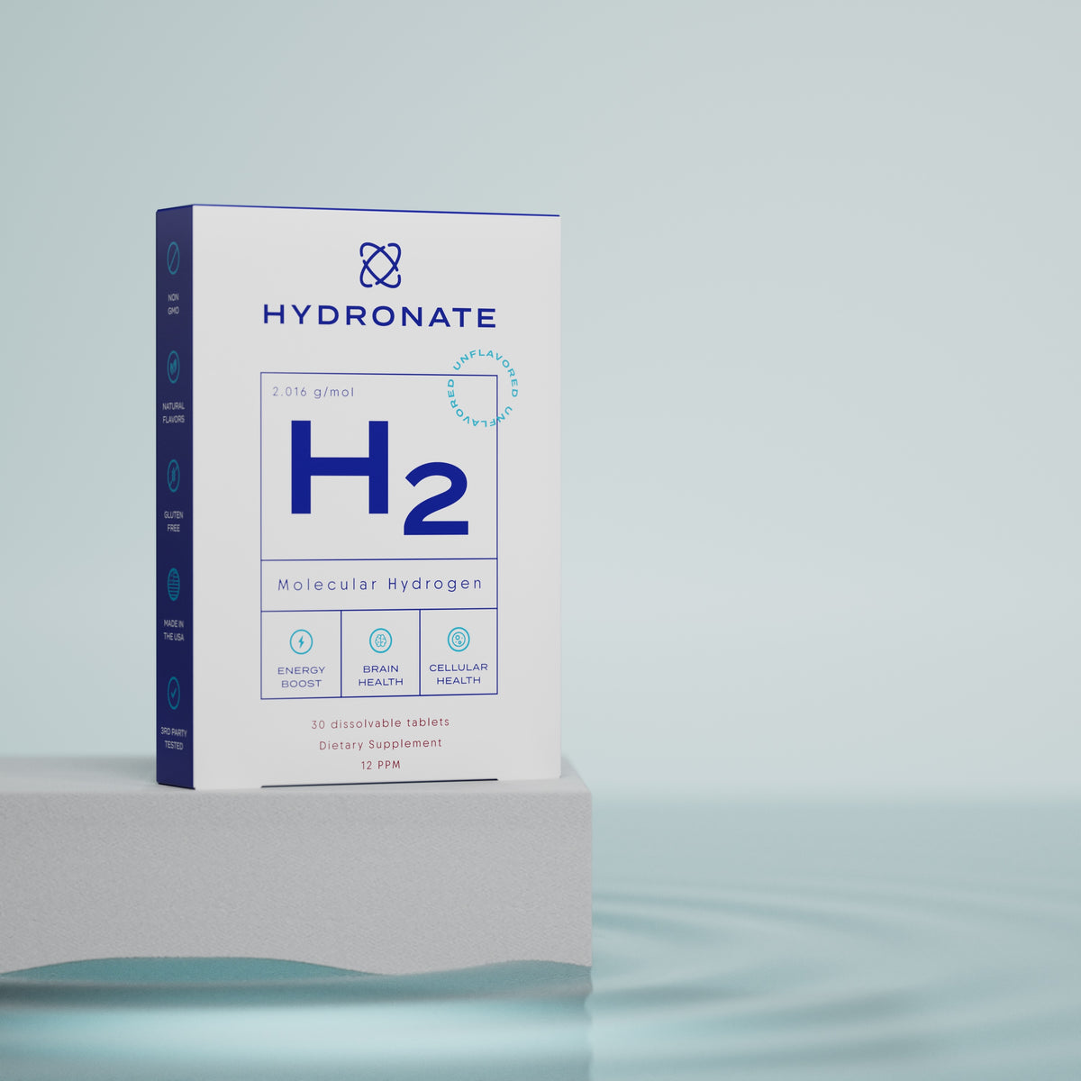 Hydronate is a molecular hydrogen tablet that when dropped into water, generates dissolved molecular hydrogen gas (H₂) — a natural antioxidant.